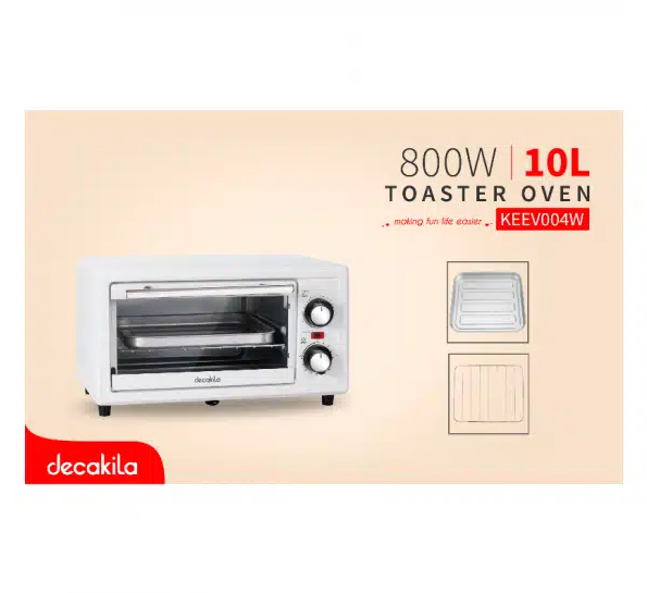 Voltage: 220-240V 50-60Hz Capacity:1 0L Wattage: 800W 60min timer 60℃~250℃ temperature control Stainless steel handle Steel housing With 1pc bake rack With 1pc bake pan With drop down crumb tray Packed by color box
