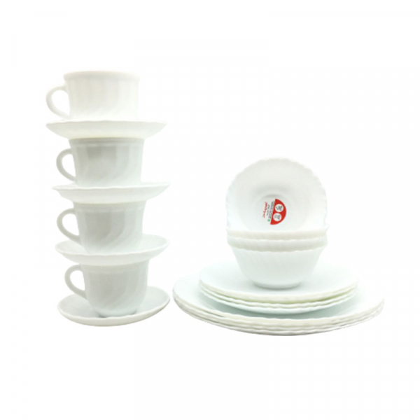 Full Plate 250mm 4.N(pcs) Quarter Plate 190mm 4.N(pcs) Soup Bowl 125mm  4.N(pcs) Cup & Saucer 220ML 4+4 N (pcs)