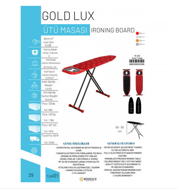 Mihrece Iron Board Gold Lux 42×118 5.75KG M-212 | A huge collection of best quality plastic items Mihrece is a mix of high quality products with functional and trendy designs and colors