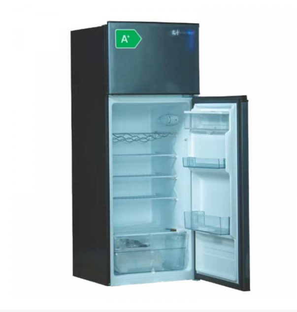Specifications: Net Capacity: 199L Refrigerant: R600a – 45g Energy Consumption: 0.59 Kwh/24h Power: 80W Voltage: 220 – 240 v/50Hz Net Weight: 35Kg Features: Double Door De Frost Size (HxWxD): 1447 x 545 x 538mm Color: Dark Grey