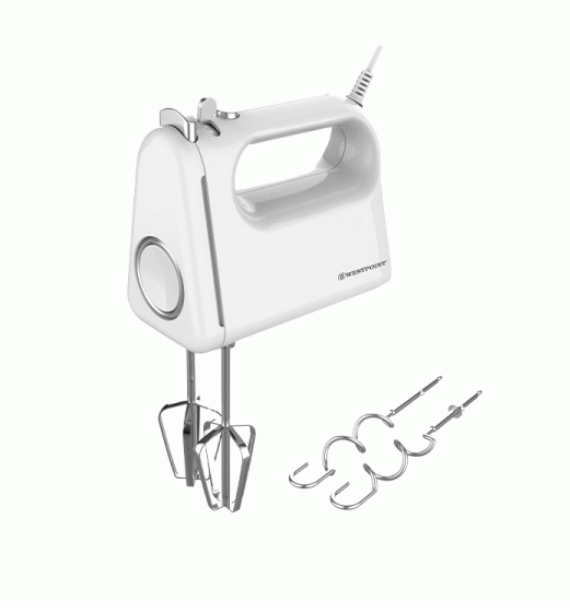Features: Hand Mixer With 2 Beaters & 2 Dough Hooks 5 Speed control Turbo Function Specifications: Power: 300W Color: White