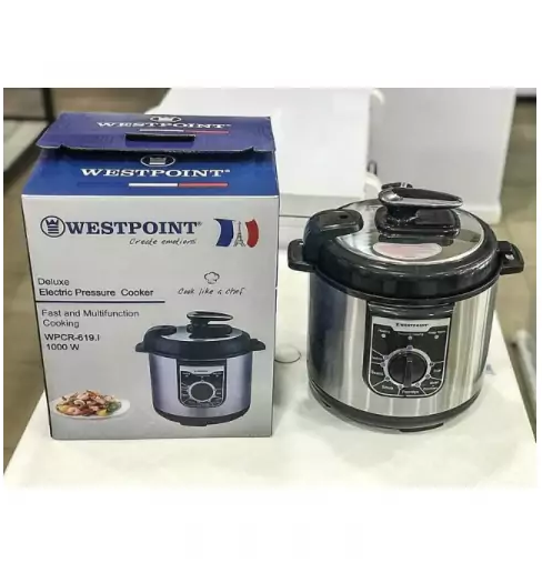 Specifications: Brand: Westpoint Model: WPCR-619.I Frequency: 50-60 Hz Voltage: 220 – 240V Power: 1000 W Lid: Metal Net Weight: 4.18 Kg Dimension (Hxwxd): 340X335X315 Mm Inner Coating: Non-stick Coating Capacity: 6 L Color: Inox